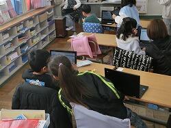 グループごとにテーマを決めて調べています。