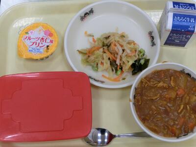 ごはん 牛乳  ポークカレー かむかむ海藻 サラダ