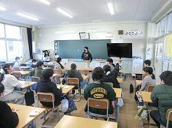 防災について調べているグループは、総務課危機管理グループの方々をお招きして講話をいただきました。