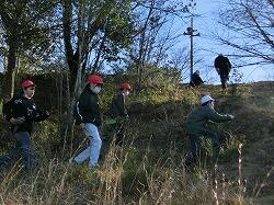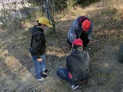 地層や化石について調べているグループは、ジオガイドの方をお招きして、学校にある地層を調べました。