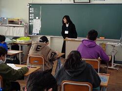ALTが給食の時間に各教室を回っています。今日は6年1組でした。交流をしながら会食を楽しみました。