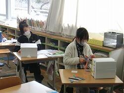 4年生の図工です。箱の形からイメージを膨らませて、作品を作っています。