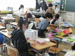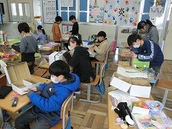 6年生を送る会の準備をしています。各学年毎に花を作ったり、出し物の準備をしたりしています。