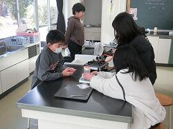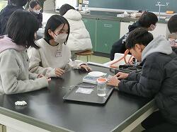 理科の学習です。食塩を水に溶かして、溶かす前と重さを比べていました。溶けた食塩について考える学習でした。