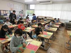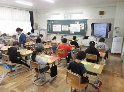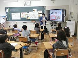 今回は4年生対象でした。献立の食材を分類したりパズルをしたりしながら、バランスのよい食事について考えました。楽しく学習を進めることができました。