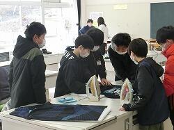 図工の様子です。新聞紙を様々な形に切ってスズランテープに吊り下げ、教室を飾りました。いろいろな形を作って楽しみました。