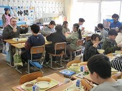 ALTが給食の時間に各教室を回っています。今日は6年1組でした。交流をしながら会食を楽しみました。