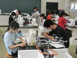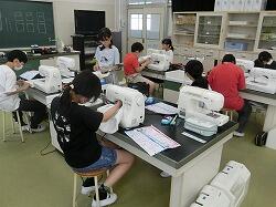 協力しながらトートバッグやナップサックの製作を進めています。ミシンの使い方が少しずつ上手になってきています。