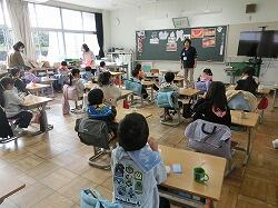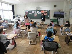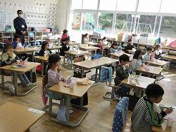 1年生の歯科教室でした。染め出しをして、歯のみがき方を学習しました。ご家庭でも、歯のみがき方を話題にしてみてください。