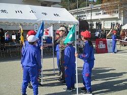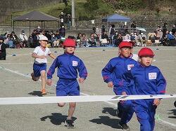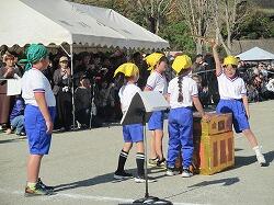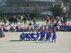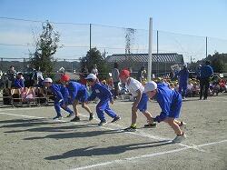 5,6年生団体種目、竹取合戦です。赤・白に分かれて竹を取り合いました。白熱した戦いが見られました。