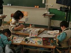 図工の授業の様子です。すごろくを使った作品を作っていました。どのようにしたら遊んだときに楽しくなるかを考えながら、楽しそうに取り組んでいました。