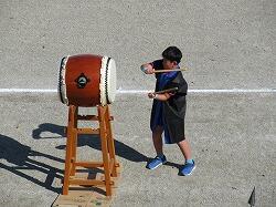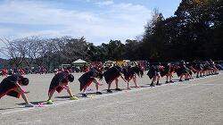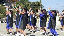 4,5,6年生による荒小ソーランです。6年生が4,5年生に教えながら練習を進めてきました。息の合った踊りを披露してくれました。
