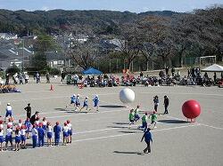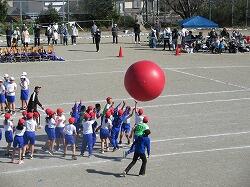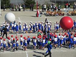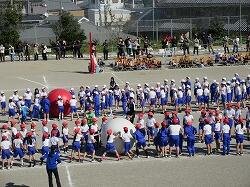 運動会の最終種目、紅白対抗全校大玉送りです。全校生で赤・白の大玉を運びました。優勝目指して協力して取り組む姿が見られました。