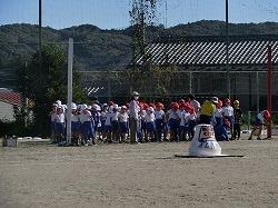 1,2年団体種目の練習です。2人1組でだるまを運びます。だるまが転ばないようにバランスを取るのが難しそうでした。