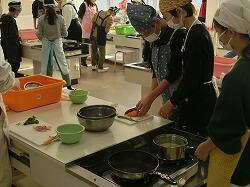 6年生が調理実習を行いました。野菜のベーコン巻き、厚揚げと野菜のチャンプルー、ベーコンポテトの3種類の中から、自分たちで料理を選んで、調理をしました。量や手順などを自分たちで考えながら、協力して調理をすることができました。
