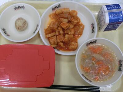 大根とツナのサラダ ミネストローネ サイダーゼリー