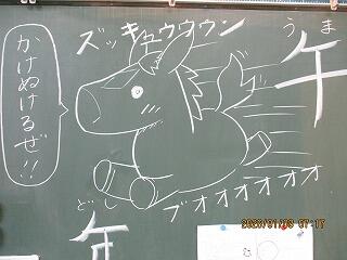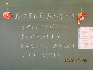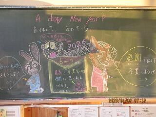 教室の黒板には、担任からあたたかなメッセージが書いてありました。