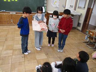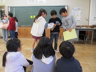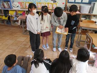 自分たちで紹介する本を決め、友達と役割分担しながら読み聞かせをすることができました。1年生も本の世界に入りこみ、集中して聞いていました。