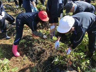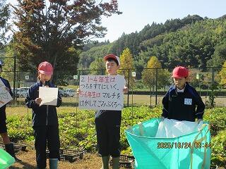 昼休みから清掃の時間にかけて花壇やさつまいも畑の草取りをしました。