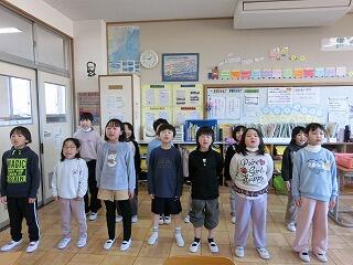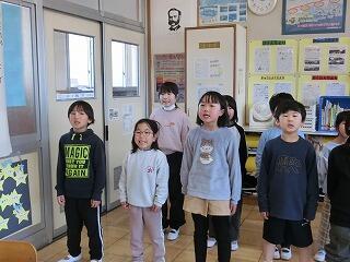 卒業式に全校生で歌う「さよなら」の練習をしていました。何でも一生懸命に取り組む1年生の姿から、1年間の成長を感じました。すてきな2年生になれますね。