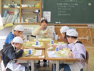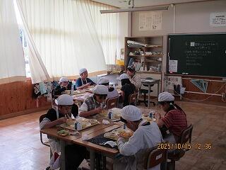 その後、大島栄養教諭といっしょにおいしい給食をいただきました。