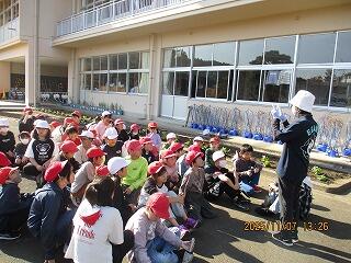 今回は、6年生が修学旅行で出かけていたため、5年生が中心となり、たてわり班ごとに落ち葉を集めました。ボランティアの方にもご協力をいただき、短時間でしたがきれいになりました。
