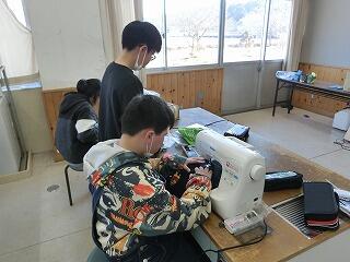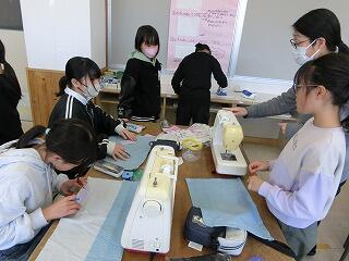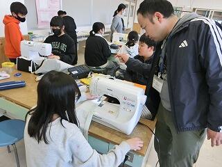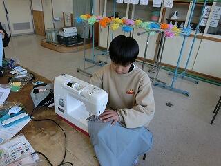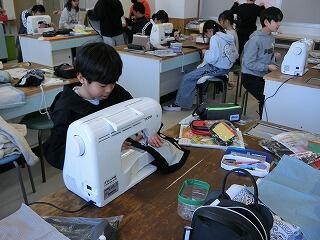家庭科「ミシンにトライ!手作りで楽しい生活」の学習の様子です。エプロン製作も最終段階に入り、完成した児童がたくさんいました。完成した児童は、これまでの学習を生かして、ランチマットを製作していました。