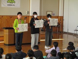 今回は、都合により2学期すこやか表彰式に参加することができなかった児童の表彰を行いました。