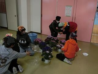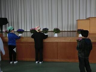 今日は、明日の卒業式に向けて、4・5年生を中心に卒業式の準備を行いました。この会場準備は在校生が卒業生にこれまでお世話になった感謝の気持ちを表す大切な活動です。椅子並べや花鉢の準備、会場やその周辺の清掃など、一人一人が自分の役割をしっかり果たす姿が見られました。本当によく働く子どもたちです。