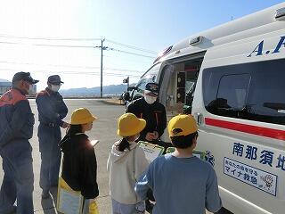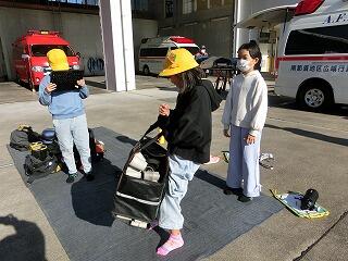 施設を見学したり、防火服を実際に着用したり、救急車に乗ったりしました。消防士の仕事や緊急車両の働きを知ることができました。