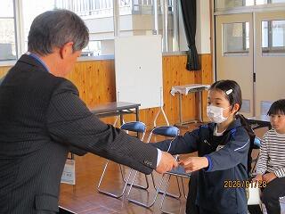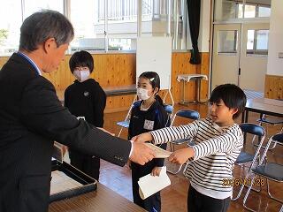 本日、書き初め展や明るい選挙ポスターで入賞した児童の表彰を行いました。おめでとうございます。