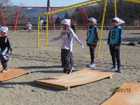 昼休みに、たてわり班ごとに遊びました。中線踏み、花いちもんめ、長縄跳びなど、それぞれの遊びを楽しみました。