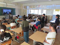 5時間目に、田植えや稲刈りでお世話になった「滝の棚田を守る会」の皆さんに来校していただき、歌や手紙のプレゼントをしたり、総合の学習のまとめを一緒に見ていただいたりしました。
