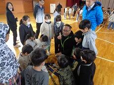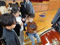 山あげ祭で演奏される曲を聴いたり、太鼓や鐘などの楽器体験したりすることができました。最後に演奏してもらった曲では「どっこいしょ!」の掛け声も入れ、山あげ祭の音楽に親しむことができました。