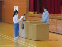 すこやか表彰式が行われました。日頃のがんばりが認められ、市長様、教育長様から、賞状とメダルをいただきました。子どもたちの晴れやかな姿が見られました。