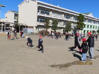 昼休みに、たてわり班ごとに遊びました。中線踏み、花いちもんめ、長縄跳びなど、それぞれの遊びを楽しみました。