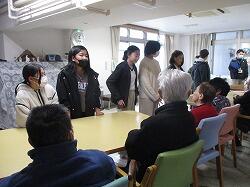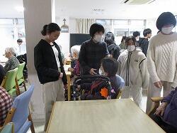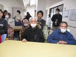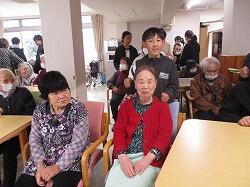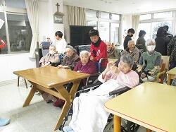「にじ」を歌ったり、じゃんけんや肩たたきなどの交流を行ったりして、施設の皆さんに楽しんでいただけました。