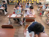 まず、6年生によるなわとびの技の紹介です。難しい技も披露し、1年生は夢中になって見ていました。