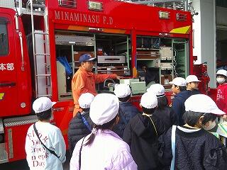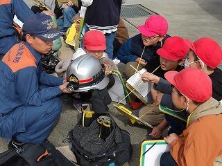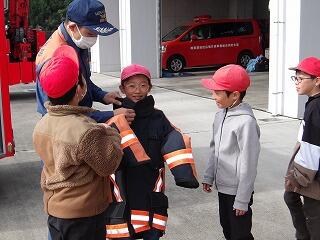 子どもたちは、消防服の重さや、災害救助ドローンに驚いていました。