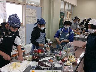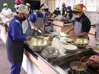 班ごとに決めた、主菜・副菜・汁物の調理実習を行いました。
