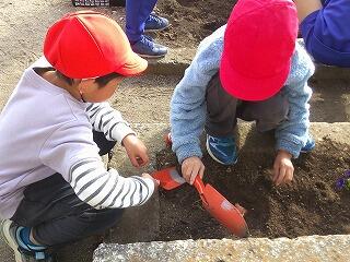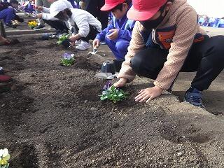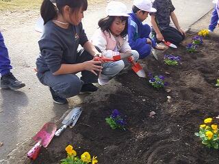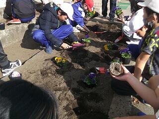 植えました。高学年のリードで、どの班も手際よく植えることができました。