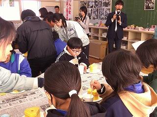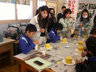 学習後半では、ミニチュアの消波ブロック(テトラポッド)づくりを体験しました。