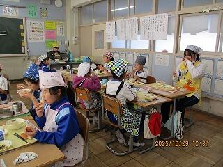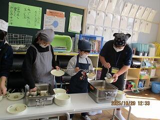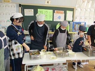 授業のサポート、給食の配膳、清掃活動など教室に入っていろいろ関わってくれました。
