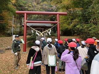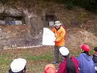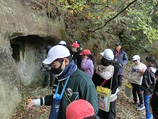 地域の地層の成り立ちについて学んだり、星宮神社では中山石の切り出した跡を見学したりなど、