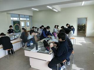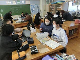 6年生は図工室と家庭科室に分かれて卒業制作を行いました。