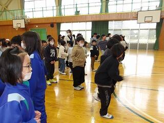体育委員会は、明日のマラソン大会に向けて、走り方の実践例を示しながら、よい走り