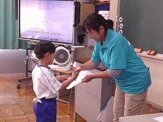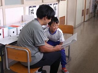 緊張しながら受け取りに行き、担任の先生の言葉に笑顔を見せていました。