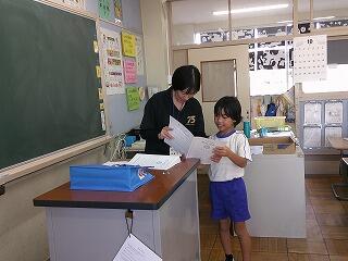 初めてもらう1年生には、通信表「ぐんぐん」がどんなものなのか説明をしました。