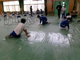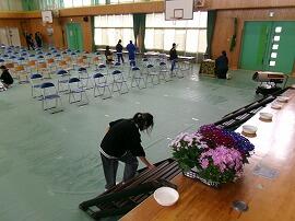 今日の午後は、明日の卒業式に向けて4年生と5年生が式場や通路、6年生の教室を