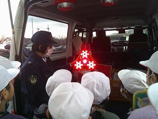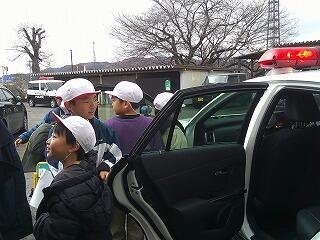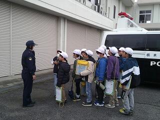 室内で警察の仕事について説明を伺い、外ではパトカーなどの様々な装備を見学させていただきました。